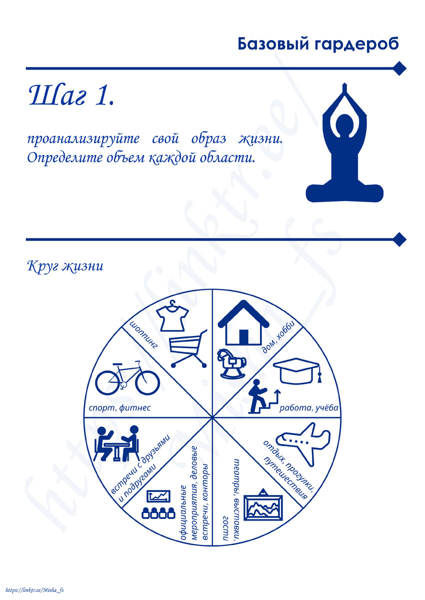 Что такое "базовый гардероб"? вы уже посмотрели и знаете. Приступаем к нашей творческой работе по шагам. Лист для заполнения. Можете нарисовать свой или распечатать этот. На нем удобнее. Сектора не обязательно дожны быть все и одинаковые - у кажого соотношение разное. Кто-то домохозяйка, а кто-то бизнес леди. Благодарю за сердечки в поддержку инфографики.