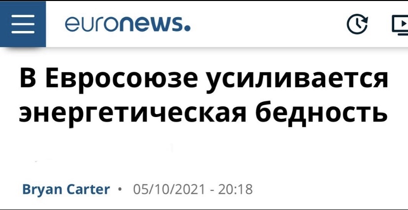 У 80 миллионов европейцев может не хватить денег для оплаты счетов за газ, пишет Euronews. «Активисты призывают признать доступ к энергии одним из прав человека и запретить отключение света и газа за неуплату счетов», сообщает издание. А тем временем Европарламент предостерёг от запуска Северного потока-2, пока он не будет «в полной мере соответствовать законам ЕС». После этого газ в Европе подорожал на 23% за один день. @RadioStydoba