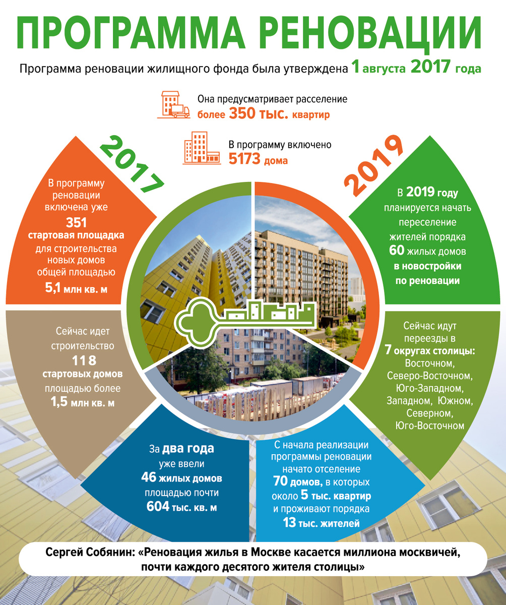ИА «Интерфакс» сообщает, что по программе реновации на юге Москвы строят более 230 тыс. кв. м жилья. «17 жилых домов площадью 230 тыс. кв. м строятся в Южном административном округе для переселения граждан в рамках программы реновации. На стадии проектирования находятся еще 15 объектов. С начала реализации программы в округе введено в эксплуатацию уже 10 домов. До конца года планируется ввести в эксплуатацию еще 7 жилых домов», — сообщает руководитель департамента градостроительства Рафик Загрутдинов. По территории Южного административного округа переселение по программе реновации реализуется в восьми районах. На юге Москвы семьям из 378 домов запланировано предоставить новое жильё. «В настоящее время более 820 семей отпраздновали новоселье, еще 315 семей находятся в стадии переезда. Всего до 2024 года, в рамках первого этапа программы, запланировано начать переселение 6,3 тыс. семей», – отметил руководитель столичного департамента градостроительства Лёвкин.