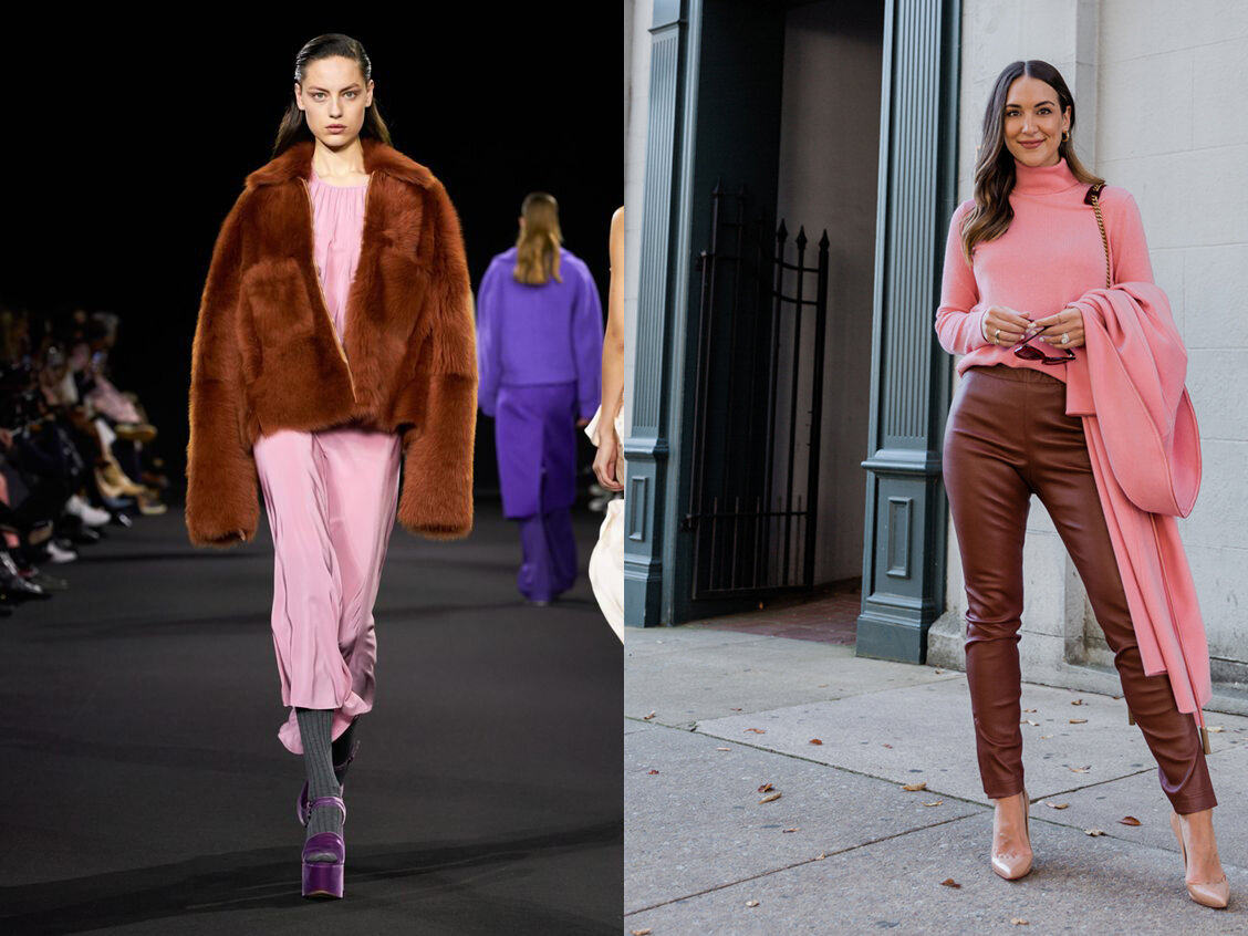Коричневый нынче в большой моде, а мы до сих пор считаем его цветом затрапезности и не вполне представляем себе с чем и как его носить. Но давайте вспомним о том, что именно коричневая кожа смотрится благороднее всех остальных. И ещё есть роскошный шоколадный цвет, который так великолепен в велюре, вельвете и бархате. А также в качественной шерсти и льне. Так вот, чтобы коричневый смотрелся благородно, а не затрапезно, освежим в памяти или впервые узнаем вот такие цветовые сочетания… Опираться при этом будем на красоту природных оттенков. Коричневый и розовый: цветущий миндаль Да, представьте себе, это не только закономерное, но и очень модное сочетание. Во-первых, нас ждёт «шоколадный сезон», во-вторых, этой зимой, как и прошлой, розовый весьма рекомендован. Такие вот у нас зимы… И сочетания этих двух оттенков неизбежны. Лично я больше люблю нежно-розовый, пудровый с коричневым, но и яркие комплекты вполне допустимы. А если вы добавите в комбинацию нежно-розового и коричневого от