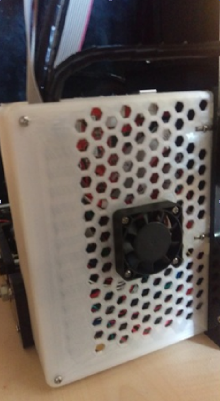 Продолжим доделывать то, что начали в первой части и во второй. Одна из наиболее частых проблем этого принтера - перегрев и выход из строя драйверов шаговых двигателей, а именно мосфетов. Меня эта участь пока что миновала, но для того чтобы снизить риск заболеть этой раковой болячкой, решил окультурить место расположения материнской платы, одновременно решив проблему с охлаждением. А именно - закрыть ее в аккуратный бокс с принудительным охлаждением. Можно было бы рисовать этот бокс "с нуля", но решил воспользоваться базой со стока бесплатных моделей, дабы не терять время и деньги по подгонке основных деталей. Вот что предлагалось В предлагаемой модели мне не понравились некоторые вестчи. Во-первых шестигранные дырки технологические отверстия вентиляции. Во-вторых, маленький размер вентилятора. В-третьих, нелогичное расположение вентилятора (еще со школьных уроков биологии мне помнится, что более холодный воздух находится ниже и, если и есть нагрев, то конвекция возникнет сама-по-себе,
