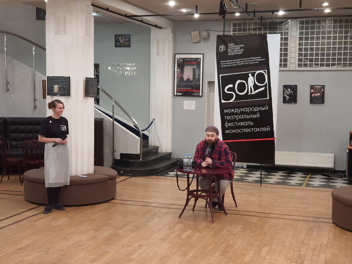 С 1 по 10 октября в Театральном центре На Страстном проходит XIII Международный фестиваль моноспектаклей SOLO. 5 октября, в рамках фестиваля, мы сыграли спектакль «Путь к сердцу». По окончании спектакля в фойе центра состоялась встреча со зрителями: о работе над пьесой Дмитрия Данилова и своём герое ответил исполнитель главной роли, актёр Игорь Войнаровский. Автор: Дмитрий Данилов Режиссер: Алексей Кузмин-Тарасов Исполнитель главной роли: Игорь Войнаровский Спасибо фестивалю за организацию и зрителям за тёплый приём!