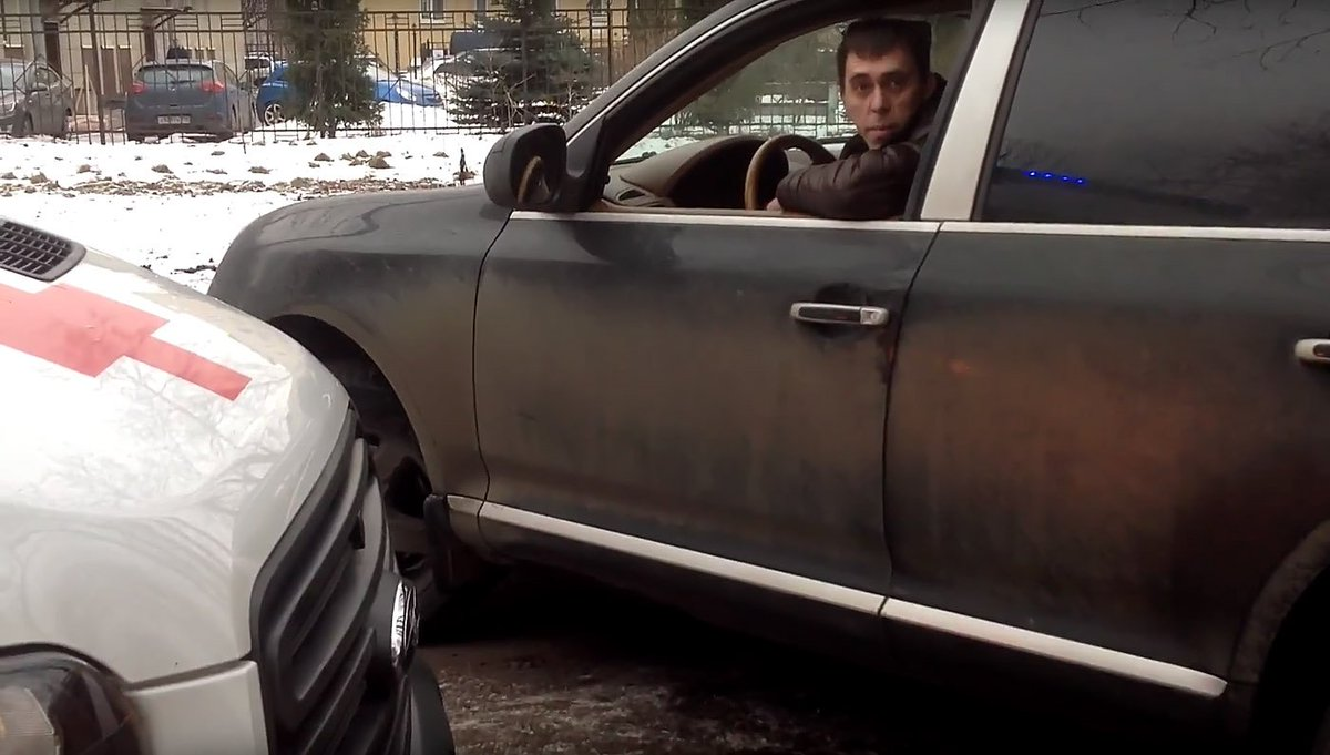 В это время Виктор как раз вальяжно вышел из своего подъезда и усаживался в свой внедорожник, видимо, отправлялся на свои важные дела. Скорая нетерпеливо посигналила перегородившей ей путь машине.
