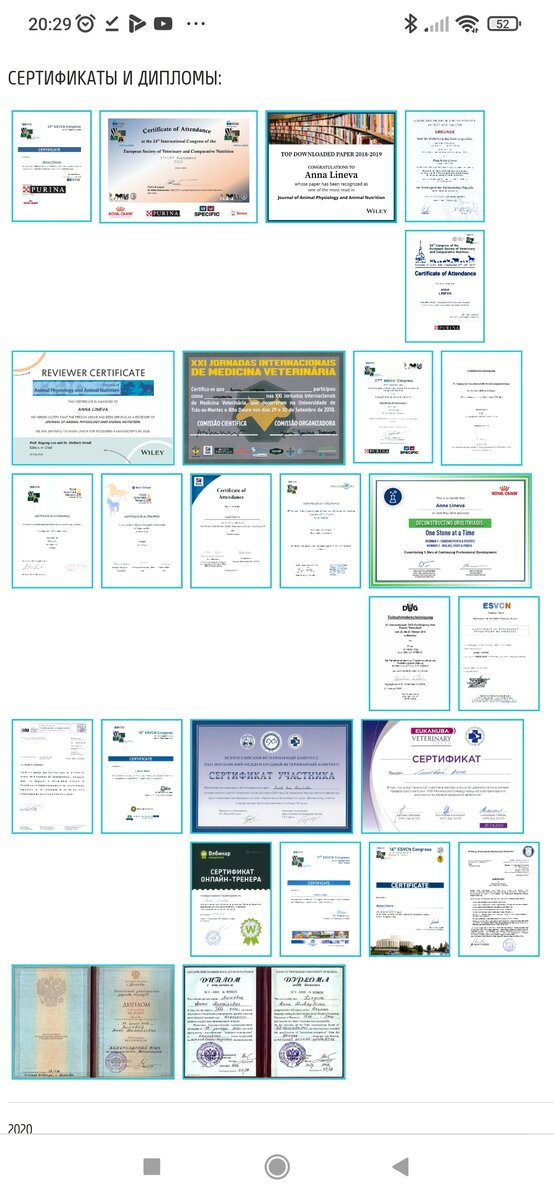 Член ESVCN с 2012 года, с 2021 года дипломант европейского колледжа ветеринарного и сравнительного кормления ECVCN