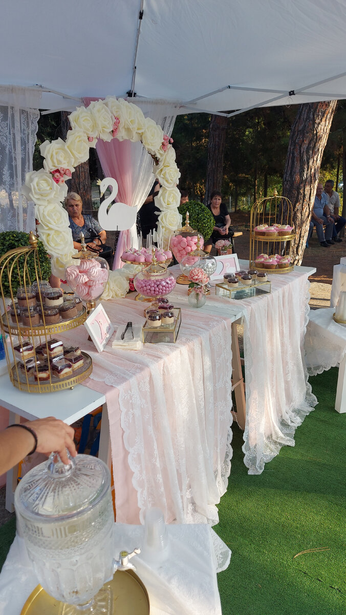 В воскресенье мы побывали на греческих крестинах (Крещение годовалый девочки Маргариты) познакомились с еще одной местной традицией. Не ожидала я увидеть праздник такого масштаба. Была в лёгком шоке. Я видела прежде фотки с Крещения и меня удивляло что женщины ходят в церковь с вечерними причёсками, ярким макияжем и в платьях со смелым декольте. Так ещё оказывается после церкви закатывают банкет, подобно свадебному торжеству! Для нашего понимания церковного обряда выглядит слишком шумно. На крестинах, где мы были приглашёнными гостями, собралось 150 человек. Сборы у церкви в 17 часов. Кто-то успел занять место внутри и присутствовал при таинстве Крещения, бОльшая часть гостей ждали снаружи. Возле входа в церковь расположен небольшой фуршетный стол со сладостями и напитками. По местным традициям родители не могут крестить ребёнка, если сами не венчаны. Здесь церковь не признает ЗАГСовский брак. Часто совмещают Крещение ребенка и венчание. Обязательно наличие крестных (кумбаре), обыч