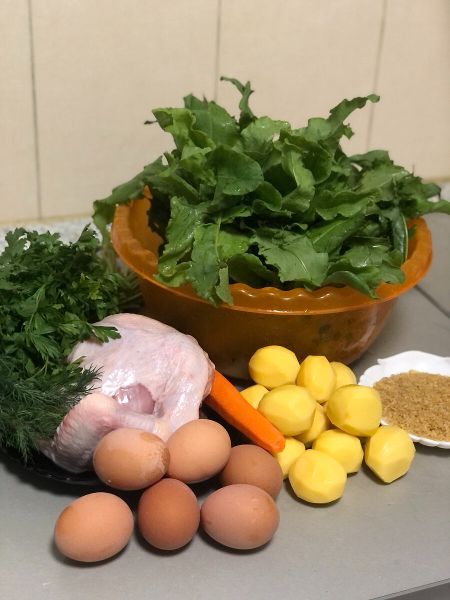 Лето прошло, а я так и не приготовила простой и лёгкий супчик. Нам понадобятся: Курицу ( я использую целую курицу , но без филейных частей грудки) залить 3-мя литрами холодной воды , добавить 1 столовую ложку соли без горки и поставить на медленный огонь. По мере закипании воды, постоянно снимаем пену , как только пена престала образоваться добавляем луковицу. Накрываем крышкой и на медленном огне варим наш бульон 50 минут. Пока бульон варится чистим и режим наши ингредиенты. Через 50 минут вынимаем курицу и луковицу. Добавляем в кастрюлю нарезанный соломкой картофель и следом булгур . Если будете готовить с перловкой , то сначала --> промытую перловку , а через 20 минут картофель. Пробуем. Булгур через 20 минут готов, добавляем натёртую на крупной терке морковь Через 5 мин.--> разделанную и нарезанное филе курицы Сразу за филе идёт нарезанный щавель и через 5 минут яйца Добавляем лавровый лист, черный молотый перец и мелко нарезанную зелень (у меня зелёный лук, укроп, петрушка,