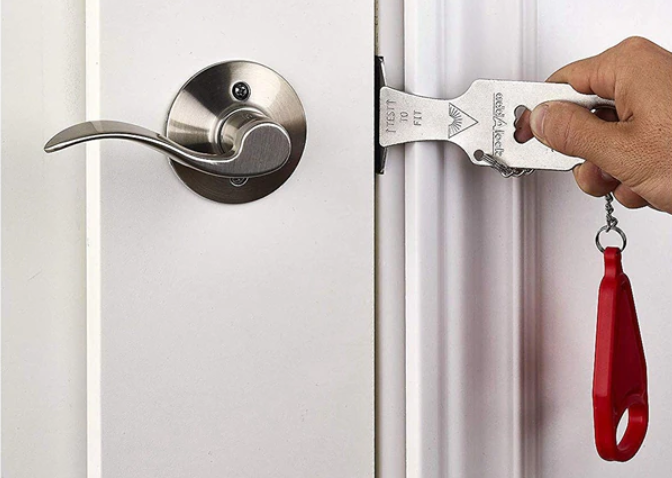 Этот дверной замок по аналогии напоминает щеколду с цепочкой, с той разницей, что в данном случае происходит фиксация.
