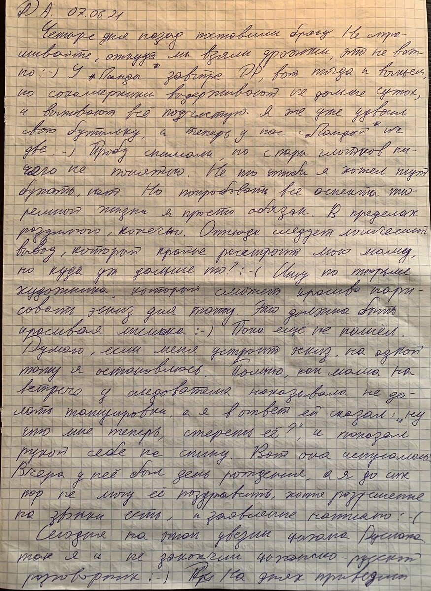 Привет! Во избежания многих вопросов и недопонимания, а также: о чем этот блог, кто мы такие (Арестант и Лисичка), навигация по каналу ЗДЕСЬ. Мы обращаем внимание, что любая информация в блоге носит повествовательный характер, и ни в коем случае НЕ пропагандирует нездоровый образ жизни, а наоборот - имеет цель предупредить читателей о проблемах с ЗАВИСИМОСТЯМИ и ЗАКОНОМ. Читать рукопись с фото не нужно - текст напечатан ниже. «07.06.2021 Четыре дня назад поставили брагу. Не спрашивайте откуда мы взяли дрожжи, это неважно :-) У Панды завтра день рождения, вот тогда и выпьем, но сокамерники выдерживают не больше суток и выпивают все подчистую. Я же уже удвоил свою бутылку, и теперь у нас с Пандой их две :-) Пробу снимали, но с пары глотков ничего не понятно. Не то чтобы я хотел тут бухать, нет. Но попробовать все аспекты тюремной жизни я просто обязан. В пределах разумного, конечно. Отсюда следует логический вывод, который крайне расстроит мою маму, но куда уж дальше то? :-( Ищу по тюрьм