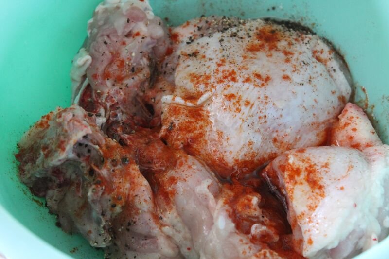 Андрюшечка опять чего-то... ест) Из неиздатого А и всё, а ведь как-то сезон и завершили практически! На огороде гордыми последними бойцами стоит отряд капусты: белокочанная, краснокочанная, брюссельская и один боец из рода "капуста цветная". Даже не предполагали, что выжил, ходили вокруг него, думали что это белокочанная не завязалась, хотел вчера курам сорвать и отнести, а оказалось, что цветная! Я вот цветную капусту люблю отварить в соленой воде, потом щедро обвалять в сухарях панировочных и хорошенько обжарить на сливочном масле до румяной корочки и хруста, но чтобы внутри мягенько-мягенько. И со сливочным же маслом съесть! Просто так, без никто и мяса. Оч вкусная эта штука цветная капуста. Вот. Но капуста-капустой, но иногда хочется чего и посытнее. Вот курица, например, она конечно не баранина, но ведь вкусная, особенно жареная. Просто жареная курица, но не с пюре картофельным или кашей какой-нито, а с овощами. Ну и для этого блюда у нас с собой было: Куриные окорока