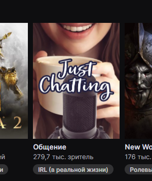 Привет, комментариев конечно не было, но 100 показов для моего первого поста меня очень сильно обрадовали, спасибо <3 Какие же категории пользуются популярностью на твиче, и что именно нужно стримить? К каждой из категории я буду приводить пример стримера. Начнем с самой популярной в снг категории "Общение" или же "Just Chatting" Самая обширная и часто используемая стримерами категория, что же в ней такого? Все просто