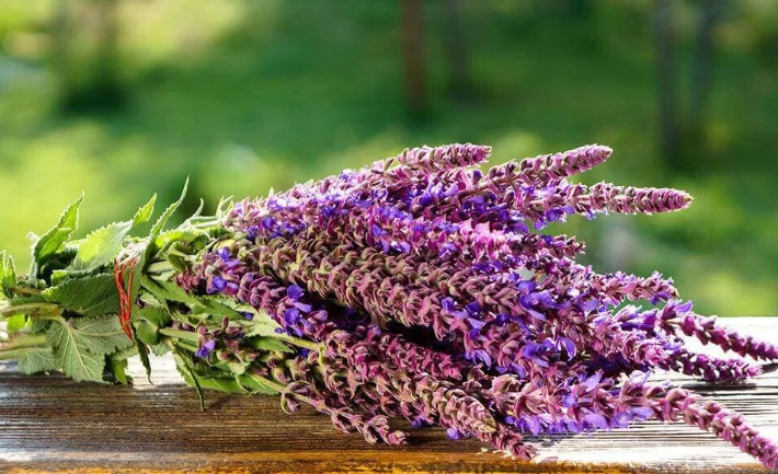 В отличие от обычного чая, шалфей нельзя пить на голодный желудок, иначе в кровь попадет чрезмерная доза кофеина, которая может спровоцировать бессонницу. Для заварки необходимо взять 1 чайную ложку травы, залить ее одним стаканом кипятка, дать настояться 5-7 минут. Употреблять по 1 столовой ложке 3 раза в день. Заготовка и хранение Свежие листья шалфея. Для того, чтобы получить полезные свойства сырья, листья шалфей, собранные в период цветения, необходимо связать в пучки. Хранить их нужно в темном прохладном месте в сухих проветриваемых помещениях не более 2-3 лет. Готовые листья шалфея. Для изготовления высушенного сырья, берем зеленый качественный шалфей и перемалываем его в кофемолке или перемножаем на мясорубке. Далее, полученный порошок, заливаем водой и нагреваем на медленном огне около 15-20 минут. После остывания, настой готов к употреблению. После приготовления сырья, добавляем его в салат или щи. Хранить траву можно 2- 3 года. Обратите внимание на то, что шал