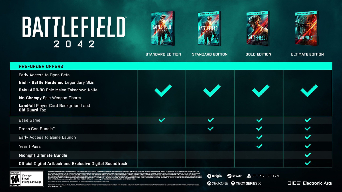 Компания Electronic Arts обновила состав стандартного цифрового издания Battlefield 2042 для PlayStation 5 и Xbox Series X|S, добавив в него версии шутера для прошлых консолей. Ранее кроссген-набор был прерогативой только более дорогих комплектов Gold Edition и Ultimate Edition.