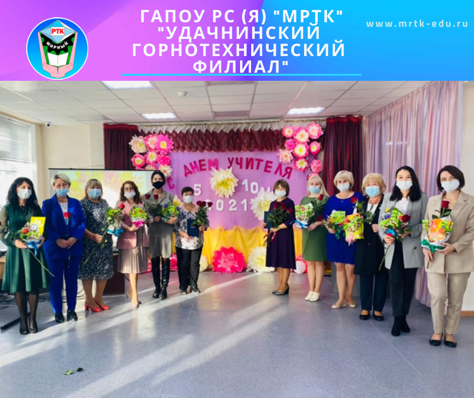 День учителя в «Удачнинском горнотехническом филиале» МРТК прошел как всегда очень душевно. В этот день каждый преподаватель нашего филиала ощутил на себе внимательное отношение студентов. Атмосфера праздника царила с самого утра. Актив филиала устроил теплую встречу для преподавателей. Ко Дню Учителя в филиале был организован конкурс «Видеооткрыток» среди учебных групп 1 – 3 курсов на самое лучшее поздравление для преподавателей. После окончания учебных занятий студенты поздравили преподавателей своими лучшими видеооткрытками, а также подарки, сделанные своими руками. Татьяна Ибрагимова, педагог-организатор. Пресс-служба ГАПОУ РС (Я) «МРТК» «Удачнинский горнотехнический филиал». Ссылки по теме: