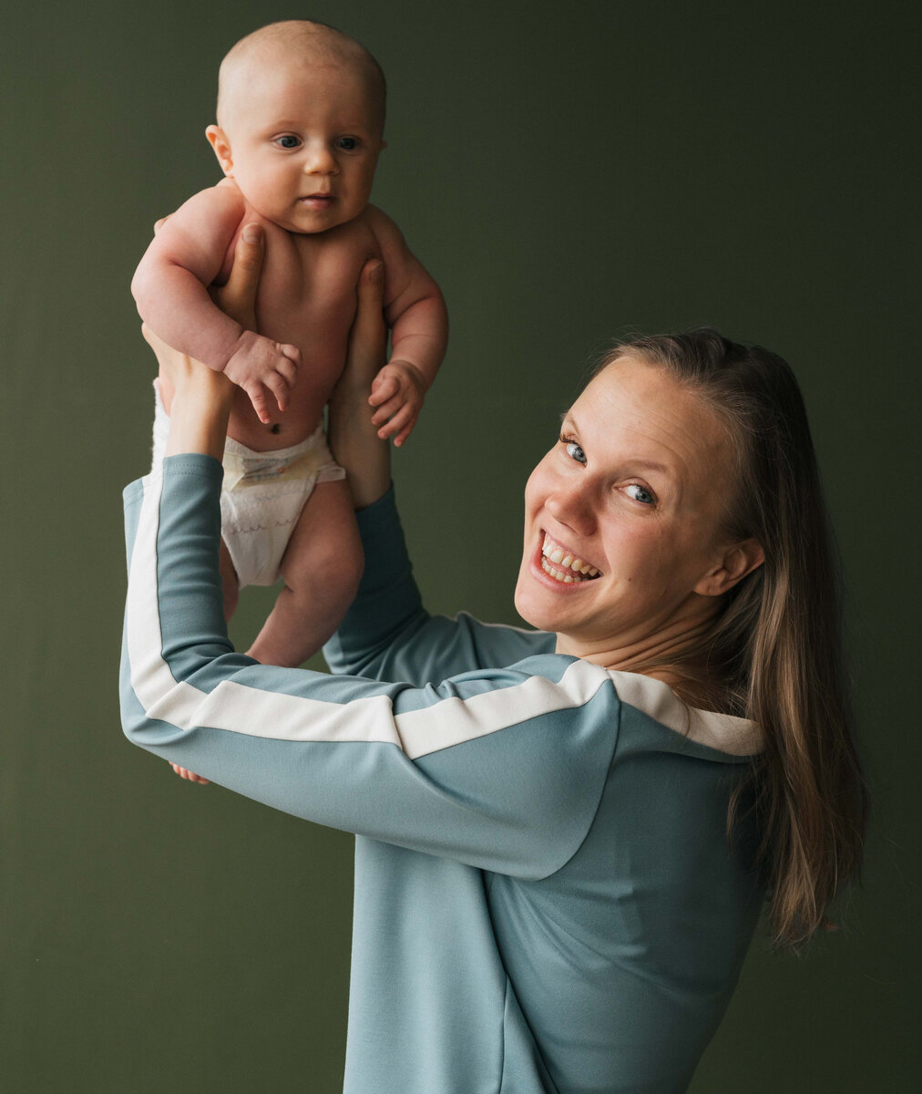 - игра «Лифт». Возьмите ребенка за корпус, а не за подмышки, чтобы не зажимать шею плечами. Поднимайте малыша вверх, проговаривая: «Лифт поехал вверх», задержитесь немного наверху и опускайте вниз со словами «Лифт поехал вниз». Движения делаем плавные, без рывком. Так можно играть с 3-х месяцев. Желательно, чтобы это делал папа, так как мамина спина не будет рада такой нагрузке.