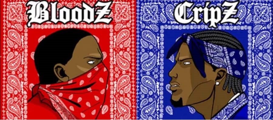 цвет одежды :“Bloods” - красный ,“Crips” -синий.