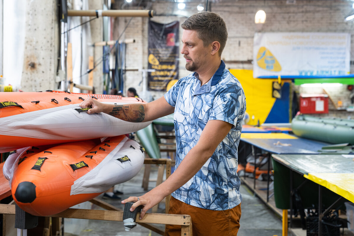 У нас семь конструкторов, у каждого свой опыт и специализация, это позволяет нам разрабатывать и производить довольно большой ассортимент надувных изделий. Главный мотор компании, визионер и лицо бренда — наверное, я. Мы стараемся сделать так, чтобы таких главных моторов было много, и каждый мог проявить себя в этой роли. Основные столпы компании, то на чем все держится, за кем идет команда — это начальник производства, руководитель отдела продаж, главный по разработкам, главный конструктор, главный бухгалтер.