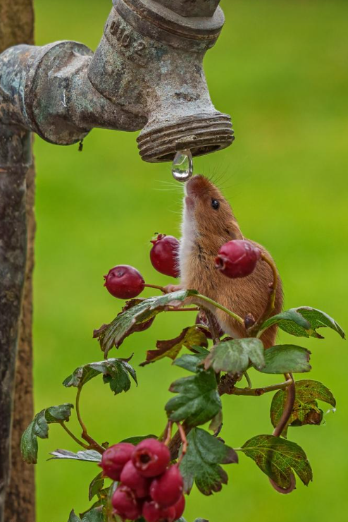 Иногда самые простые вещи оказываются и самыми интересными, значимыми. Сейчас осень — время сбора урожая, что особенно актуально для зверей. Мы тоже восхитились снимком мышки-малютки, которая решила напиться водицы. Фото Джеймса Грегори стало лучшим снимком недели Как рассказал фотограф, он наблюдал за мышками в частном питомнике в Линкольншире. Именно эта особь была самой деловитой, активно собирала зернышки и ягоды, а потом направилась к крану. Он нарочно оставлен капающим, чтобы у мышей была возможность попить, но фотограф признает, что видел это впервые в своей карьере. У мышей-малюток сейчас жаркая пора — нужно накопить запасы на зиму Эти крошечные мышки не впадают в спячку, поэтому зимой им нужно много еды. Сейчас время сбора ежевики и шиповника — их излюбленного лакомства. ПОНРАВИЛСЯ ПОСТ? - ТОГДА ЖМИ ПОДЕЛИТЬСЯ, ПОРАДУЙ СВОИХ ДРУЗЕЙ!