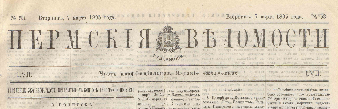 Опубликовано в газете "Пермские губернские ведомости", 7 марта - 7 апреля 1895 года.