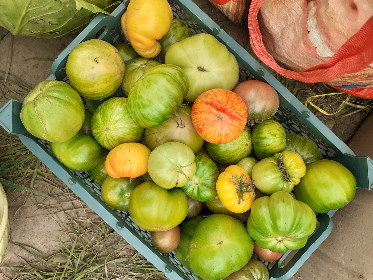 Томаты в грунте я убрала уже давно, ещё в середине сентября и часть плодов всё же погибла от фитофторы (я в период сбора урожая не обрабатываю), а вот в теплице собираем только сейчас, причём все - и поспевшие и зелёные, они же потом в тепле дозариваются, хотя уже, конечно, не такие сахарные: