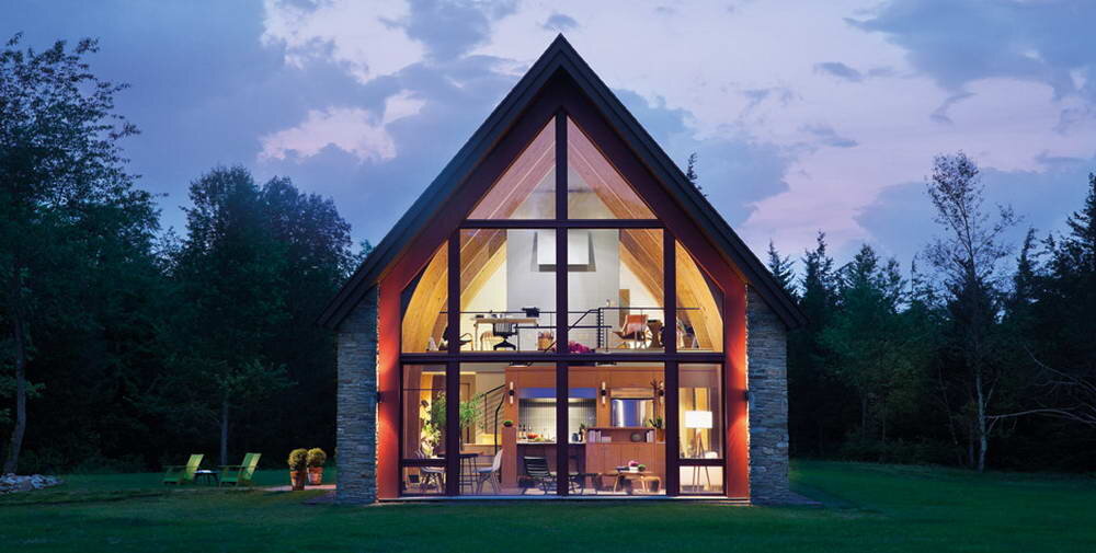В своё время этот дом очень впечатлил, да и сейчас остаётся одним из самых любимых и по образу, и по конструктивным решениям. Этот дом, построенный в долине Гудзона, в центре живописного поля, в двух часах езды на север от Нью-Йорка, стал первым пассивным домом в штате. В доме простая и понятная планировка, в нём есть двусветная просторная гостиная, три спальни и два санузла. Дом, построенный в стилистике «дом-сарай» («дом-амбар») полностью соответствует требованиям, предъявляемым к пассивным домам, он экономит 90% энергии. В нём два тепловых насоса, энергоэффективные витражи (725 серии) и великолепная теплоизоляция. При этом стоимость, по утверждению авторов, не превышает стоимости строительства аналогичного обычного жилья. Название: Первый пассивный дом в Нью-Йорке (First Passive House in New York)