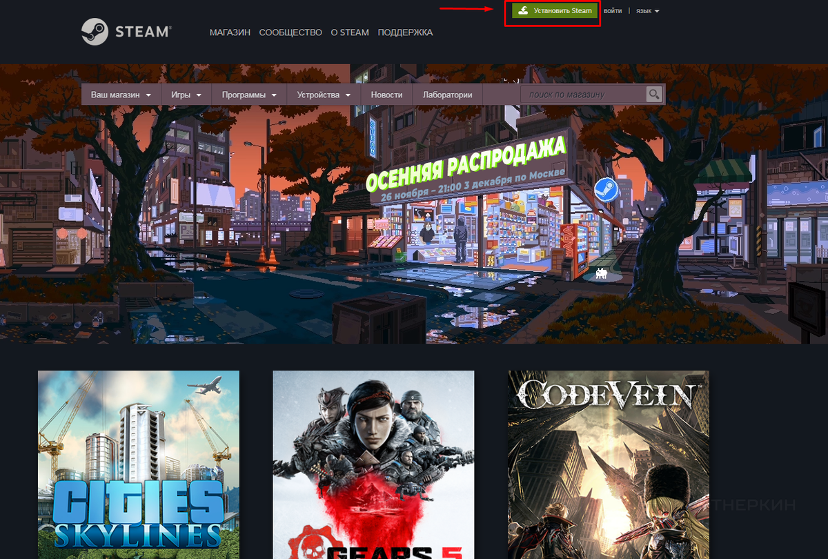 Для любого пользователя доступны две версии Steam: браузерная и программная. По функционалу вторая на порядок превосходит первую, плюс ко всему работает значительно шустрее. Поэтому именно на ее примере мы рассмотрим все способы заработка. Итак, чтобы скачать Steam, переходим на официальный сайт: store.steampowered.com и выбираем соответствующий пункт.