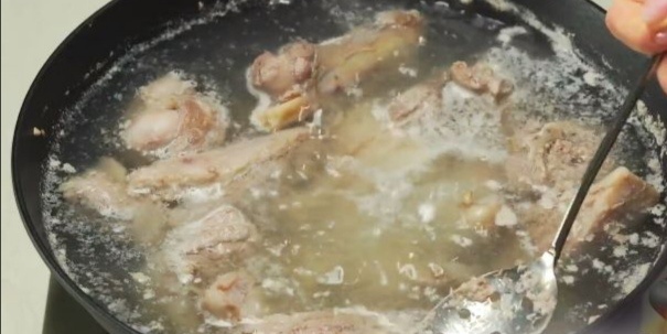 Наваристый бульон из баранины или говядины, заправленный крупно нарезанными овощами, с нежными кусочками вареного мяса, приправленный ароматными специями. Шурпа - это действительно "кулинарное чудо"! На первый взгляд - доступные ингредиенты: морковь, картофель, помидоры, лук. Но сочетание овощей и мясного бульона, а также особый рецепт приготовления дают тот неповторимый вкус, благодаря которому шурпа так популярна. Нам понадобится : -Баранина на кости - 1 кг -Картофель, некрупный - 6 шт. -Перец болгарский - 2 шт. -Помидоры - 2 шт. -Морковь - 3 шт. -Лук репчатый белый - 3 шт. -Лук красный - 1 шт. -Перец чили сухой - 3 стручка -Перец чили свежий - 0,5 шт. -Кинза сушеная - 1 ст. ложка -Зира - 1 ст. ложка -Кориандр, семена - 1 ст. ложка -Базилик сушеный - 1 ст. ложка -Кинза свежая - 10 г -Петрушка свежая - 10 г -Лук зеленый - 10 г -Соль - по вкусу -Вода - 2 л Шаг 1 Мясо залить в казане холодной водой. Добавить 1 ч. ложку соли. Довести до кипения. Снять всю образовавшуюся пену. Шаг 2 Нарез