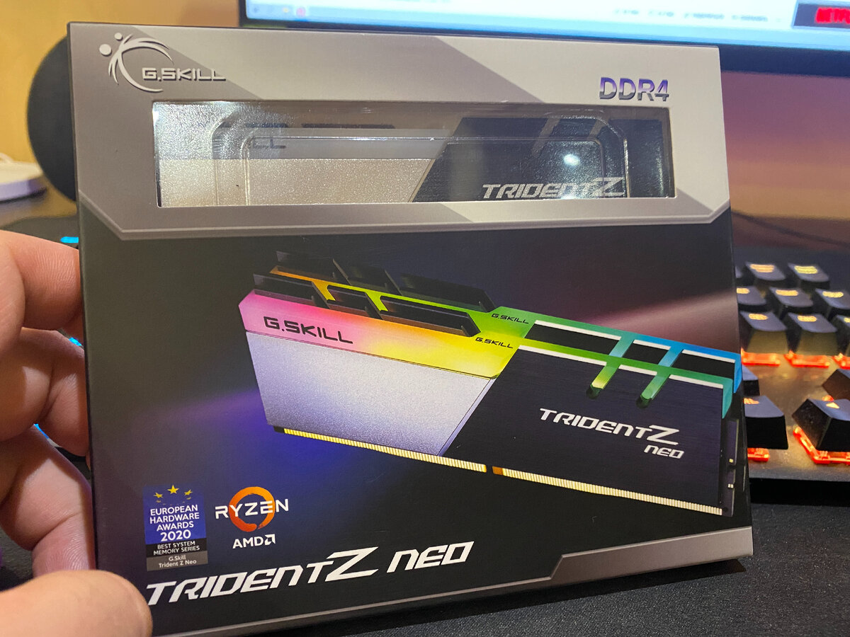 Продолжаю возню с компьютером и своим рабочим местом. Не скрою, для меня это игрушка и я получаю от всего этого процесса большое удовольствие. На днях мне привезли заказной комплект оперативной памяти 16 Gb DDR4 3600MHz G.Skill Trident Z Neo (2x8 Gb) тайминги 16-19-19-39. В сумме получилось 32 Gb. На сегодняшний день мне хватало 16 Gb для всех основных задач, но я боялся, что данные модули могут пропасть с полок магазинов, а с другими комплектами памяти может возникнуть конфликт совместимости. К тому же, я уверен, что через 1-2 года 32 Gb будет абсолютной нормой, как сейчас 16 Gb. Память завелась с XMP профилем на 3600MHz. Работает без проблем, проходит все тесты. С таймингами и частотами я не игрался. Чтобы вставить две планки оперативки мне пришлось снимать кулер (be quiet! Dark Rock Pro), который занимает много места. Если кому интересно, то у меня Ryzen 7 5800X. Горячий парень. Заодно почистил компьютер от пыли, заменил термопасту на процессоре на новенькую MX-5. На моё удивление