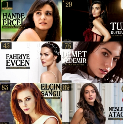 Стоит отметить, что помимо Ханде в список "100 самых красивых лиц" (среди женщин) по версии Top Beauty World попали ещё 5 турецких актрис, но все они не смогли показать такой высокий результат. Какое место заняли другие турецкие актрисы в 2020 году, смотрите на фото ниже.