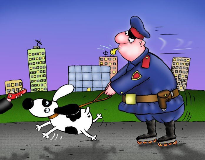 Прекрасное солнечное утро. Пожилой мужичина гуляет по городскому парку. За ним бежит маленькая собачка. Подходит милиционер и говорит строго: — Наденьте на собаку поводок! Иначе я оштрафую вас! Мужчина идет молча дальше. Милиционер свирепеет: — Если вы немедленно не наденете на собаку поводок, вам придется выложить хорошенькую сумму! Мужчина идет дальше. Милиционер достает блокнот, что—то пишет в нем, отрывает листок и протягивает: — Вот квитанция на штраф! — Почему я должен платить? Это не моя собака! — Что? А почему она бежит за вами?! — Ну, вот вы тоже бежите за мной…