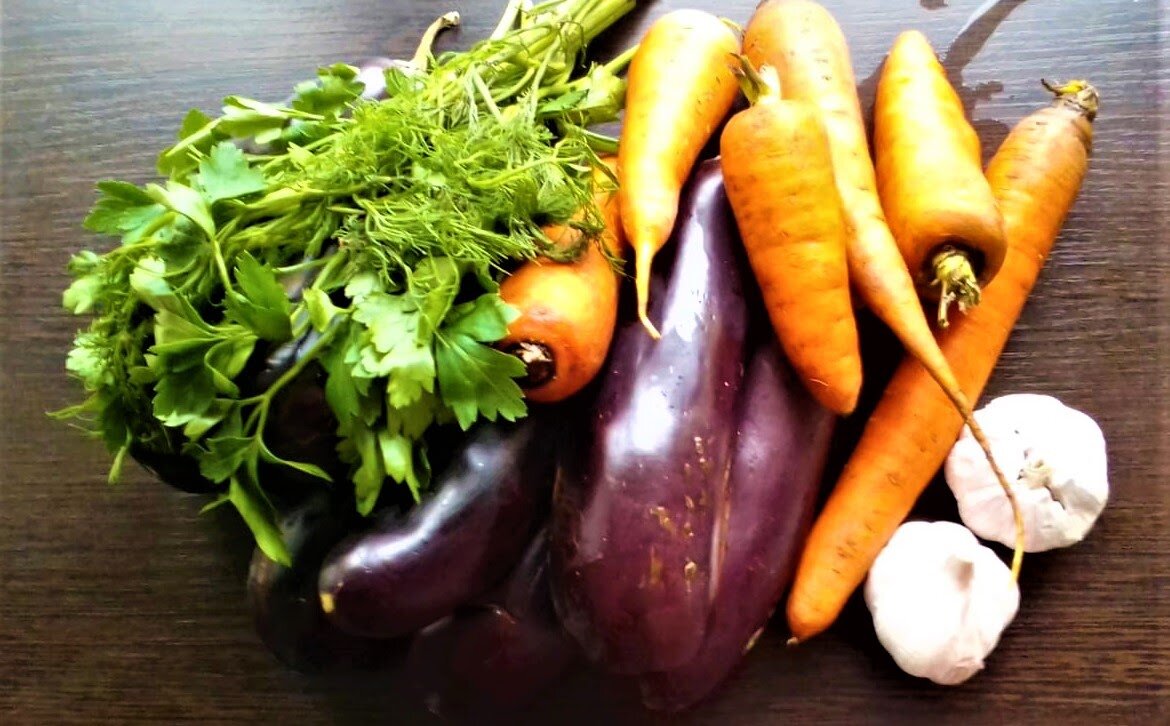 Квашеные баклажаны с морковью, зеленью и чесноком