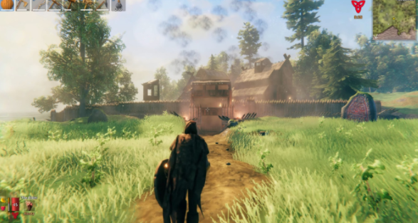 Valheim - игра, в которой персонаж может умереть, войдя в огонь. Если вы уже ступили в него, то быстро прыгайте в воду. Также будьте осторожны при валке деревьев - не стойте там, где падает дерево. Даже катящиеся бревна могут вас убить.