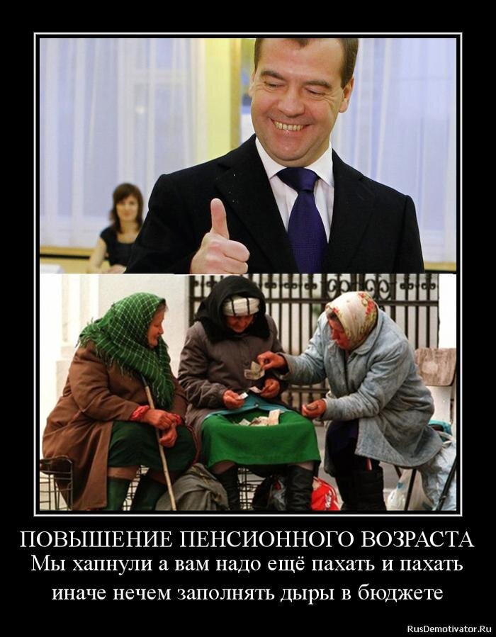 Снизить пенсионный возраст, это пожалуй самый простой способ победить безработицу Надо уже власти понять, что в пожилом возрасте люди должны отдыхать, а рабочие места должны принадлежать молодым и здоровым. Я думаю, со временем лет этак, через ....дцать развитые страны— Европы и мира —обязательно подойдут к этому выводу - либо к снижению пенсионного возраста, или к выплатам базового дохода, который будут выплачивать за то, что все компьютеры —к этому времени —займут все рабочие места. Эта некрасивая манера— работать до преклонных лет—пришла именно из развитых стран европейского континента. Конечно, есть ещё и Япония с ее концепцией— "пожизненной занятости", но это скорее исключение для азиатских стран, чем норма. А вот в Европе уже стало нормой работать до 65-67 лет. Причем как для мужчин, так и для женщин. В этом преклонном возрасте выходят на пенсию в Италии, Греции, Бельгии, Швейцарии, Австрии и ещё в десятках других стран европейского континента. Цифры возраста выхода