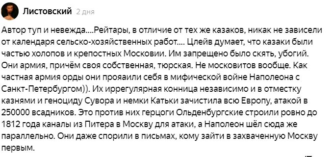 Бывает так, что темы для статей мне придумывать самому не приходится - накидывают сами читатели. Так и в этот раз, когда я написал две статьи - о снаряжении и тактике рейтаров Московского царства, а также о том, за чей счет они снаряжались. Если кто не помнит - или сами, или их содержание оплачивали различные посады , слободы и общины. Как действовала регулярная армия в 17 веке- посмотрим тут. Во второй статье некоторые читатели возмутились на мой выпад относительно казаков и репы, которую они сажали. ( Естественно, эта фраза была лишь метонимией - один вид деятельности подразумевал собой целый ряд других). Но поборников справедливости было не остановить: Первый комментатор явно из стойбища альтернативно-одаренных историков, и его не спасти. Трем другим можно ответить. Чтобы не запутаться, разберем вопрос на примере донских казаков. Казаки, конечно же, не занимались одной лишь войной, понятное дело, хотя об их набегах, куда они отправлялись в "ветоши" и с минимумом снаряжения, нап