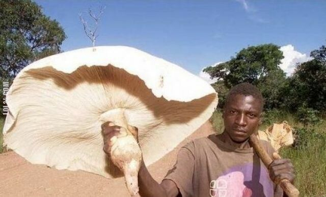 Когда я впервые увидел эту фотографию, то списал ее на очевидный фотошоп. Ну не могут физически грибы достигать таких размеров! Срок жизни плодовых тел невелик, им не хватит питания. Да и вредители съедят их раньше. Однако, с этими грибами оказалось не все так просто. Они вырастают до таких гигантских размеров, потому что их культивируют...термиты. В интернете регулярно возникают фейковые фотографии гигантских насекомых и растений. Самый знаменитый из фейков - это фотография 1937 года с гигантским кузнечиком. Наверняка вы видели ее на просторах Сети: Что касается грибов - то это, действительно, самые крупные организмы в мире. Но речь идет о мицелии! Грибнице, которая способна разрастаться на сотни метров и даже километры. Рекордсмен найден в США. Он занимает 37 гектаров, а мицелий весит свыше 400 тонн. Ученые оценивают его возраст в 2,5 тысяч лет. Но только вот наземная часть этого монстра гигантизмом не страдает. Это обычные опята: Однако в природе действительно существует гриб-гиг