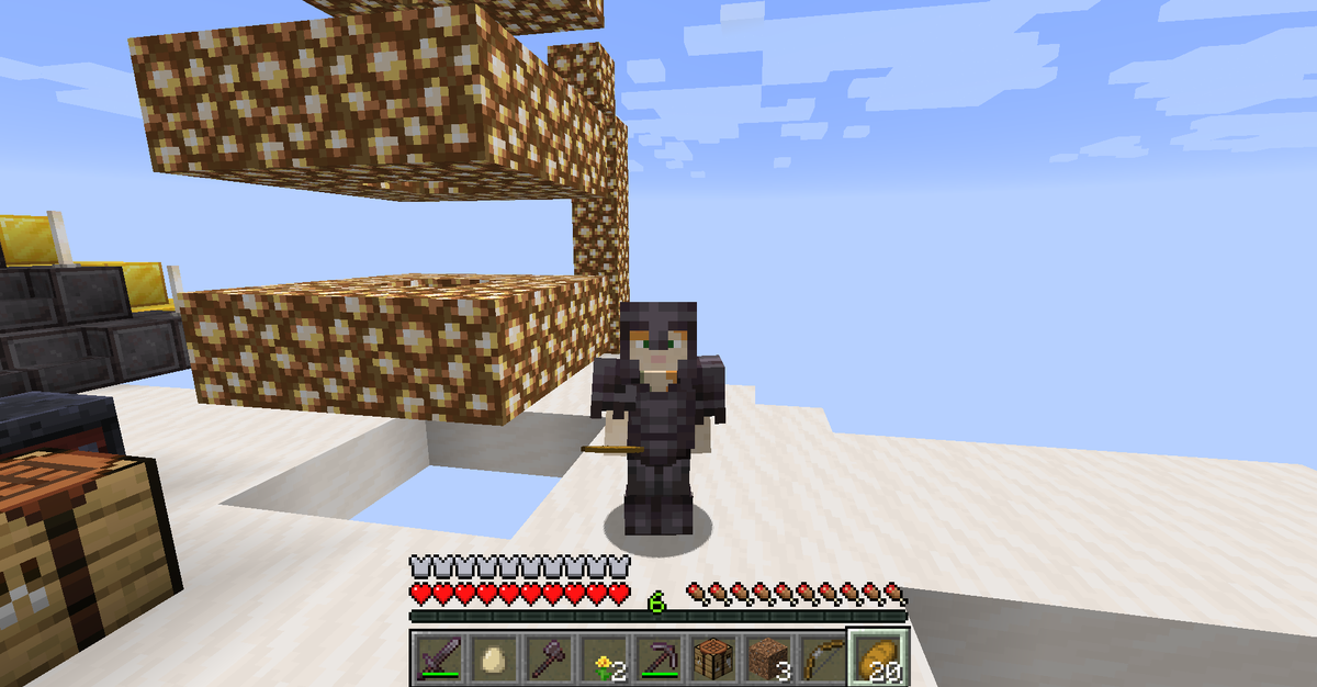 Всем 👋! Да да, название вас не обманывает, это последняя часть снапшотного выживания, сейчас объясню всё по порядку. Вот он я), в конце прошлой части я скрафтил себе лук в измерении missing, для того чтобы было легче победить эндер дракона, и после этого я пошёл в измерение twobillion, чтобы собрать побольше ресурсов для стрел. Но уже в измерении я вспомнил, что я тут уже был и там полно ифритов. Пришлось быстро делать ноги. Я ввел в строку число 2 и оказался в очень интересном мире, в котором полно эндерняка. Я решил его собрать, для битвы с драконом, ведь его дракон пробить не может, только проникает его насквозь. И уже в измерении holes я решил: идти на дракона нужно сейчас. Я собрал ещё немного еды и пошел, молясь, что в этот раз всё получится. Уже в мире я увидел 3 драконов, пикирующих на меня, пришлось строить вот такое укрытие: Но как только я решил посмотреть обстановку, меня со страшной силой кинуло на другой корабль. Где и там я построил укрытие. Я выбегал наверх, переодиче
