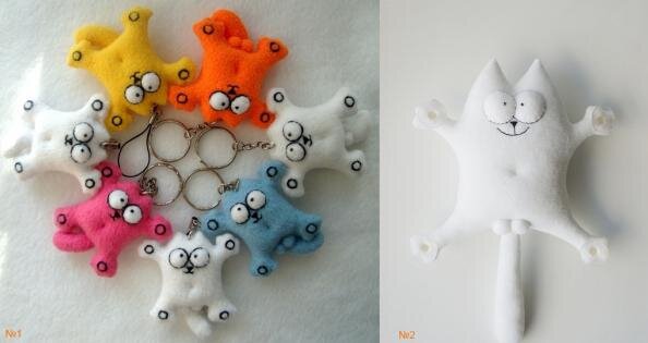 Вышеупомянутая модель "Кот Саймон" также подходит для изготовления небольших кулонов или магнитов. Просто вшейте между ушками игрушки специальную рамку или прикрепите магнит к спине кошки.