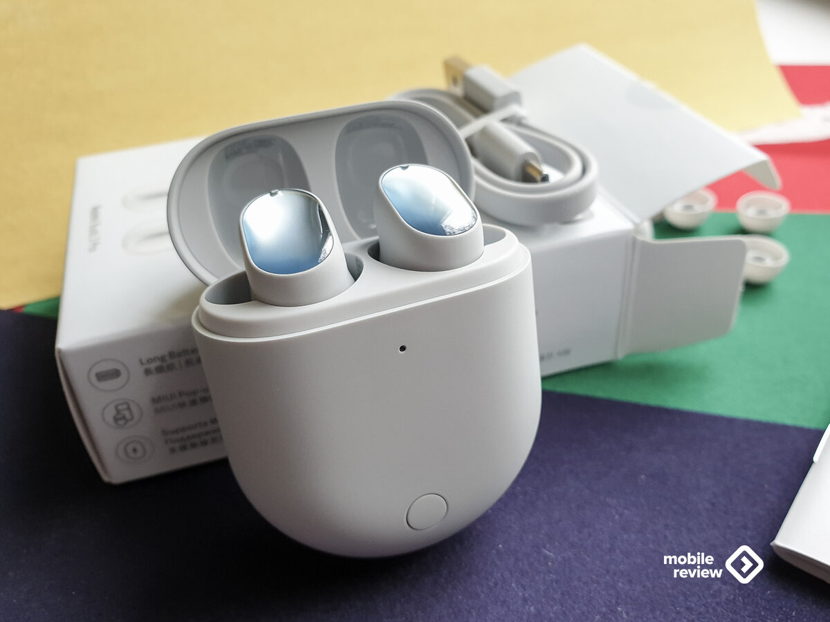 При взгляде на Redmi Buds 3 Pro кажется, что в первую очередь это модный аксессуар. Наушники поставляются в двух цветах: чёрном и сером. Перламутровая отделка в сером цвете делает наушники похожими на серьги. По-моему, это и хорошо. Всяко интереснее, чем обычные «уши», выполненные в стилистики AirPods.