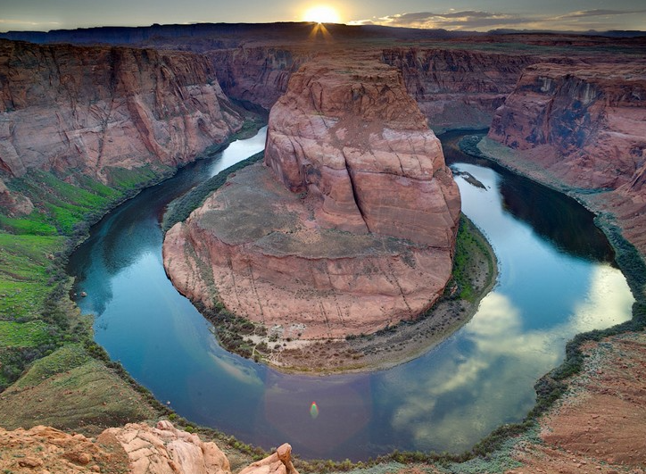 В США в штате Аризона – изгиб реки Колорадо. Река окружает скалу водной гладью в форме симметричной подковы