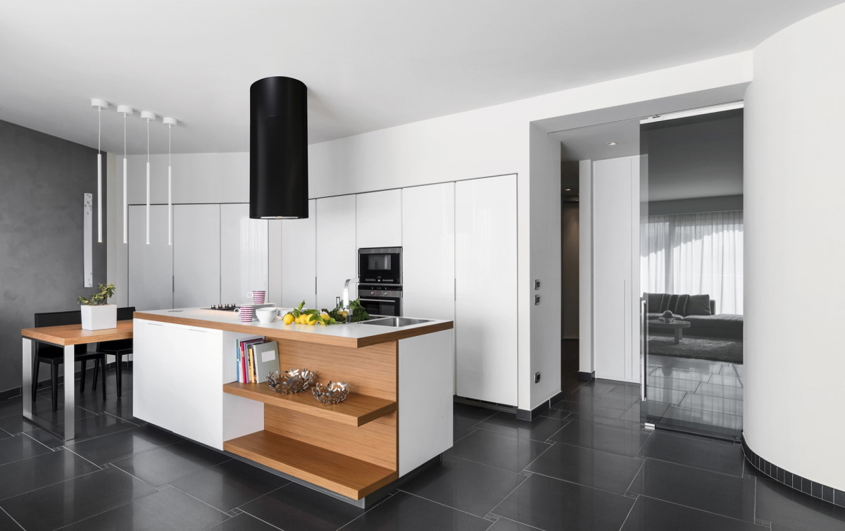 Достоинством островных вытяжек является гибкость установки, которая особенно придется кстати при перепланировке кухни. Как правило, такая вытяжка уместна на большой кухне, где варочная панель и основная рабочая зона расположены вдали от стен. Островные модели, свисающие с потолка, как сталактиты, это не только центральный элемент украшения помещения, но и эффективное средство очистки воздуха, и дополнительный светильник. Наш обзор посвящен разбору особенностей пяти современных островных вытяжек, которые умеют работать в режиме отвода и рециркуляции. Здесь собраны цилиндрические и Т-образные устройства, которые отличаются формой и способом забора воздуха. Наиболее продвинутые вытяжки могут похвалиться наличием пульта ДУ, совместимостью с регенерируемыми угольными фильтрами, несколькими вариантами цветового оформления и низким энергопотреблением. А самые дорогие премиальные модели получили в оснащение таймер выключения, функцию автоматического беспроводного управления с плиты и даже модуль Wi-Fi для удаленного управления через интернет.