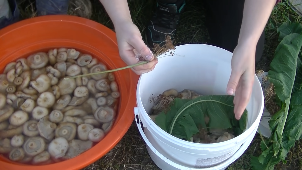Здравствуйте уважаемые читатели и любители дел садово-огородных. Сегодня я расскажу вам о способе холодной засолки груздей. Данный рецепт очень прост и, я думаю. проблем у вас с ним не возникнет. Итак, после того, как мы сходили в лес и насобирали грибы, нужно их замочить - берём десятилитровое ведро, засыпаем туда грибы и заполняем доверху водой. Примерно через два-три часа, когда грибы постоят в воде, их очень легко помыть от всякого мусора. Так как грузди растут в лесу, на шляпках они собирают очень много мусора, земли и песка, поэтому их нужно хорошенько вымыть. Для помывки мы берём обычную губку для посуды, достаём груздь из ведра и жесткой стороной губки без особого надавливания очищаем шляпку от загрязнений. Грибочек получается чистым и красивым. Некоторые грибники соскребают черную поверхность на шляпке, но я этого не делаю, так как в процессе соления шляпка приобретает красивый фиолетовый цвет, а на вкусе это никак не сказывается. После того как мы почистили грибы, опять