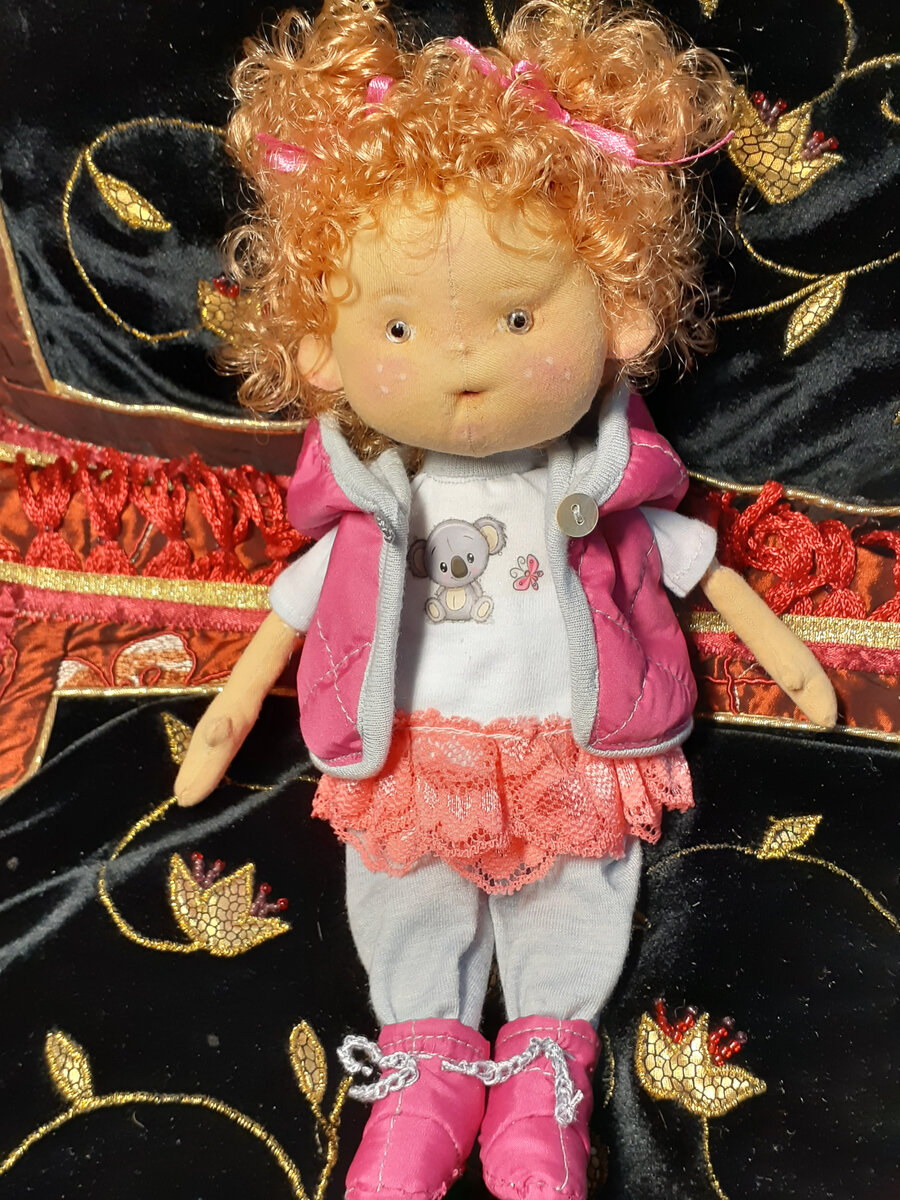 ШЬЕМ КУКЛУ-МАЛЫШКУ. ДАРЮ МОЮ ВЫКРОЙКУ. Дорогие друзья, всем большой привет! После длительного перерыва продолжаем публикации по шитью куколок. Ковид позади. Сегодня я представлю вам куколку высотой в 25 см. Выкройку дарю вам мою, авторскую. Итак, начинаем! Раскроим на ткани все детали ( животик и спинка по 2 детали, ручки и ножки по 4, лицо 2 детали и затылок - одна деталь). Выкладываем на столе и постепенно сшиваем все детали до получения тушки. Проклеим все швы клеем ПВА пополам с водой. Выворачиваем и набиваем все детали кроме головки. На место отмеченное на выкройке изнутри пришиваем бусину. Прямо на шов. Место носика будет четко читаться на лице куколки. Фиксируем нитками бусину крепко, чтоб не сместилась во время набивки. Но проверяем чтоб нитка не была видна с лицевой стороны. Набиваем головушку крепко и пришиваем ушки. Пришло время глазок. У меня стеклянные, но подойдут и пластиковые, и бусинки любого подходящего цвета. Импровизируйте, интереснее получится! По этой выкройке