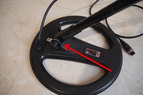 - Почему это молодой человек закрепил катушку металлоискателя в обратную сторону, он не читал инструкцию? Он так может не найти потерянное золото и серебро на пляже. - Сейчас у него про это и спросим. Недавно, проводя поиск на пляже, обратил внимание, что у одного товарища по поиску катушка металлоискателя была закреплена в обратную сторону. Этот вариант крепления может снижать ошибку наклона катушки к земле, но и имеет большие недостатки. Случайно можно оступиться, надавить на нижнюю часть катушки и произвести поломку. Не рекомендую крепить катушку к металлоискателю в обратную сторону. Думаю есть исключение, если есть необходимость раздвигать кусты штангой катушки, то думаю что можно попробовать. Поэтому никого не слушайте, а крепите катушку к штанге металлоискателя, как написано в инструкции, хотя идея заслуживает внимания. Производителям катушек можно обратить на это внимание. Крепление катушки металлоискателя к штанге Во время крепления катушки к штанге не забывайте давать слабину