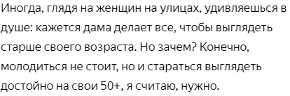 Главное - причёска Вывод: Современные стрижки - это здорово. Помните, старомодную прическу точно обратят внимание. Макияж - дело важное Макияж с учётом возраста - минус к вашему возрасту. Одежда На сколько должны быть объёмными вещи? Украшения, бижутерия и ювелирка Сумка Туфли моей прабабушки