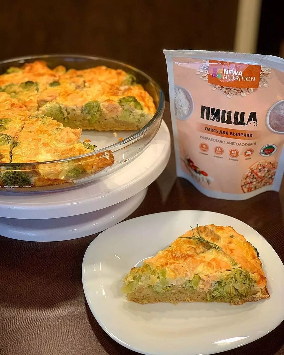 смесь для пиццы @newanutrition , брокколи, лосось/форель/горбуша ( любимая рыбка), яйцо (2шт), сыр, соус.