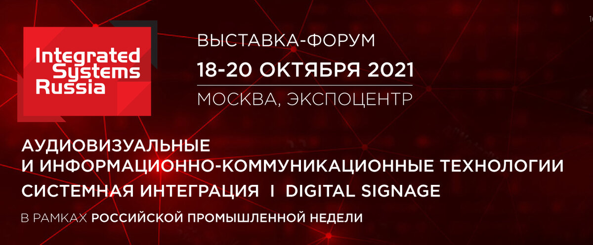 Международная выставка-форум Integrated Systems Russia, посвященная области AV и IT технологий, системной интеграции, решений Digital Signage и профессионального аудио, пройдет уже 18-20 октября в московском Экспоцентре в рамках Российской Промышленной Недели. Мероприятие пройдет на территории Экспоцентра (Москва)