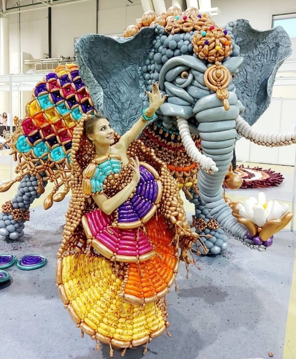 На прошлой неделе в Москве на фестивале воздушных шаров 2021 состоялся удивительный конкурс. Конкурс по изготовлению костюма из воздушных шариков. Уверена, вы не только не видели ничего подобного, но и вряд ли об этом слышали. Не удивительно, ведь создание арт объектов из воздушных шаров - дело уникальное, нет никаких учебных заведений, где можно получить знания в этой области. Только опыт, эксперементы и фантазия. Только посмотрите, что может получится из обычного воздушнгого шарика... Ладно, не совсем обычного. В основном в плетении из воздушных шаров используют специальные длинные и тонкие шарики для моделирования или колбаски, как называют их аэродизайнеры. На изготовление воздушного наряда конкурсантам было выделено всего 8 часов. За это время нужно было не только создать платье, но и подготовить модель к дефиле, прическа, аксессуары, мейк. У наших конкурсантов получились просто фантастические образы. Согласны? Но самое главное было впереди. Модели в платьях участвовали в модно
