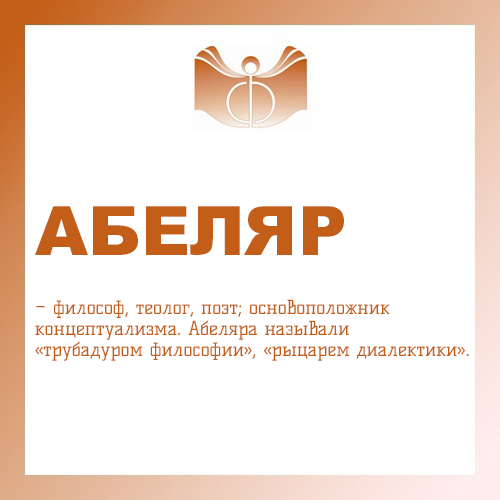 АБЕЛЯР Петр (Petras Abailardus, Abaelardus) (1079 в Пале, близ Нанта – 21 апреля 1142, Шалон) – философ, теолог, поэт; основоположник концептуализма. Абеляра называли «трубадуром философии», «рыцарем диалектики». Родился в Бретани в рыцарской семье. Отказался от права майората, стал школяром-клириком. До 1098 посещал в Вансе школу Росцелина, номиналистическую доктрину которого позже расценил как «безумную». Математике учился у Теодорика (Тьерри) Шартрского. В Париже изучал диалектику и риторику у Гильома из Шампо. Сам держал школы в Мелене, Корбейле, Париже, где в основном занимался диалектикой. После 1113 учился в Ланской школе у Ансельма Ланского, где начал преподавать теологию на рациональных основаниях и без церковного разрешения, что вызвало протест Ансельма и его сподвижников. В 1113 написал «Введение в теологию», в 1114 – «Логику для начинающих». После Лана преподавал теологию в Париже, где занял место магистра в соборной школе; получил звание каноника. К 1118–19 относится его роман с Элоизой, племянницей каноника Фульберта. В это время были созданы лирические стихи, а впоследствии замечательная переписка, автобиографическая проза «История моих бедствий» и «Problemata» (ответы на вопросы Элоизы относительно противоречий в Библии и др.). Женившись на Элоизе уже после рождения сына Астролябия, Абеляр предпочел не оповещать широко о браке, чтобы не повредить магистерской карьере. Этому противостоял Фульберт. Тогда Петр перевез Элоизу в монастырь, устроив фиктивный постриг. Фульберт, решив, что Абеляр таким образом избавился от его племянницы, нанял слугу, который оскопил Абеляра. После этого и Абеляр, и Элоиза затворились в монастыре.
