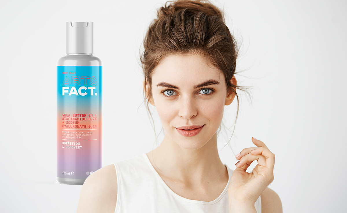 У большинства людей кожа тела такая же чувствительная, как и кожа лица. Поэтому шелушения, ощущение сухости и стянутости зачастую становятся нашими постоянными спутниками. Не самая лучшая экология и вода, синтетические ткани, заболевания, гормональные перепады и банальная нехватка времени на полноценный уход за телом приводят к печальным последствиям. На помощь приходит новинка от Art&Fact – увлажняющее и восстанавливающее молочко для тела с маслом ши 2%, ниацинамидом 0,7% и гиалуроновой кислотой 0,1%. Оно идеально подходит для сухой и чувствительной кожи. Как действуют компоненты Масло ши широко известно своим защитным действием, а также эффективно восстанавливает кожу, препятствуя испарению влаги. К тому же оно прекрасно питает и увлажняет, чем дарит как мгновенный, так и долгосрочный комфорт. Ниацинамид – это форма витамина В3. Он усиливает микроциркуляцию сосудов, повышает тонус, регулирует воспалительные процессы и ускоряет обменные процессы в клетках. В итоге кожа выглядит и чувс