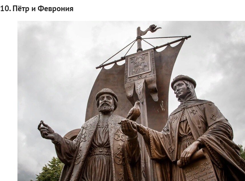 Самыми популярными святыми в России, если судить по памятникам, являются Петр и Феврония.