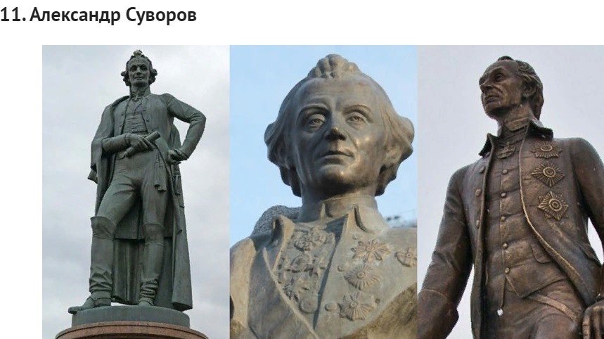 Памятники генералиссимусу Александру Суворову не насаждают, как картошку при Екатерине, однако их все же довольно много.